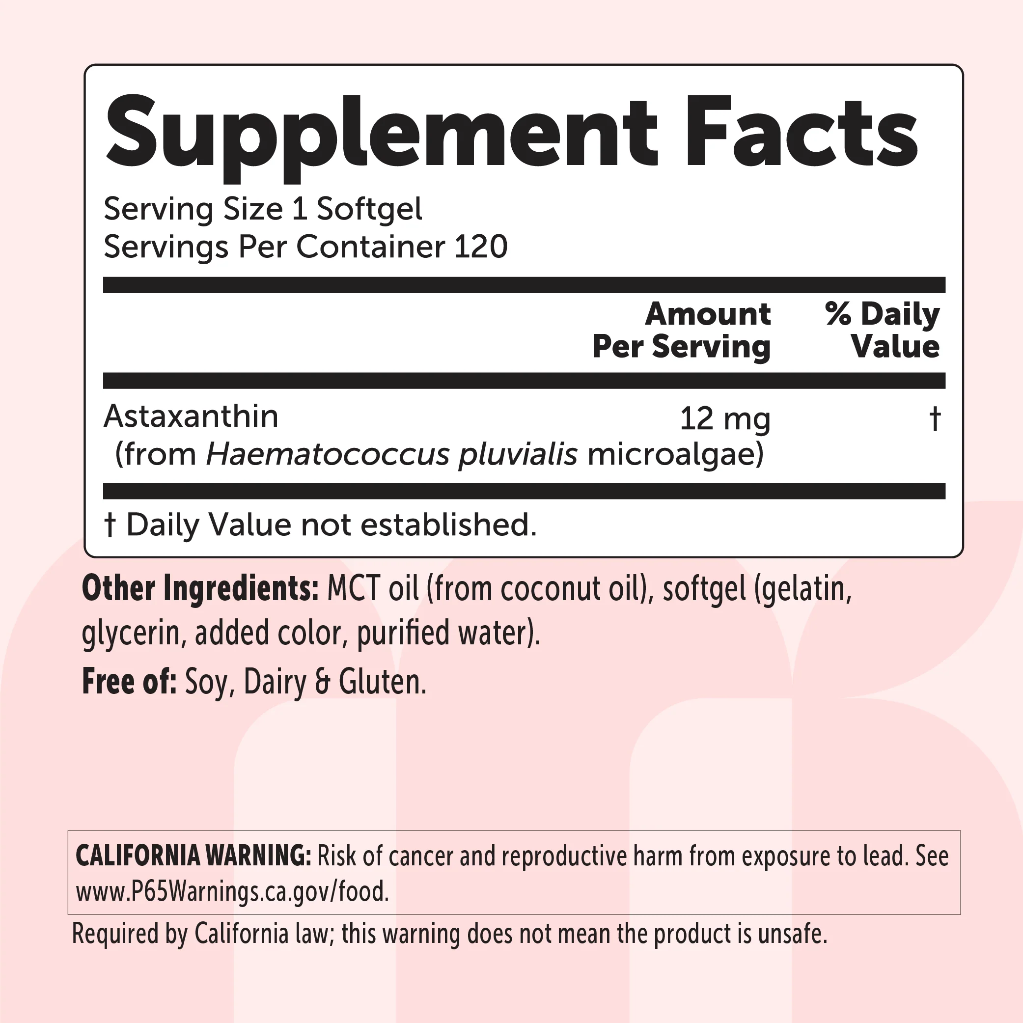 Micro Ingredients Astaxanthin 12mg, 120 softgels, tanning pills, Strength Carotenoids Skin Supplement w. 100% Natural Astaxanthin from MicroAlgae