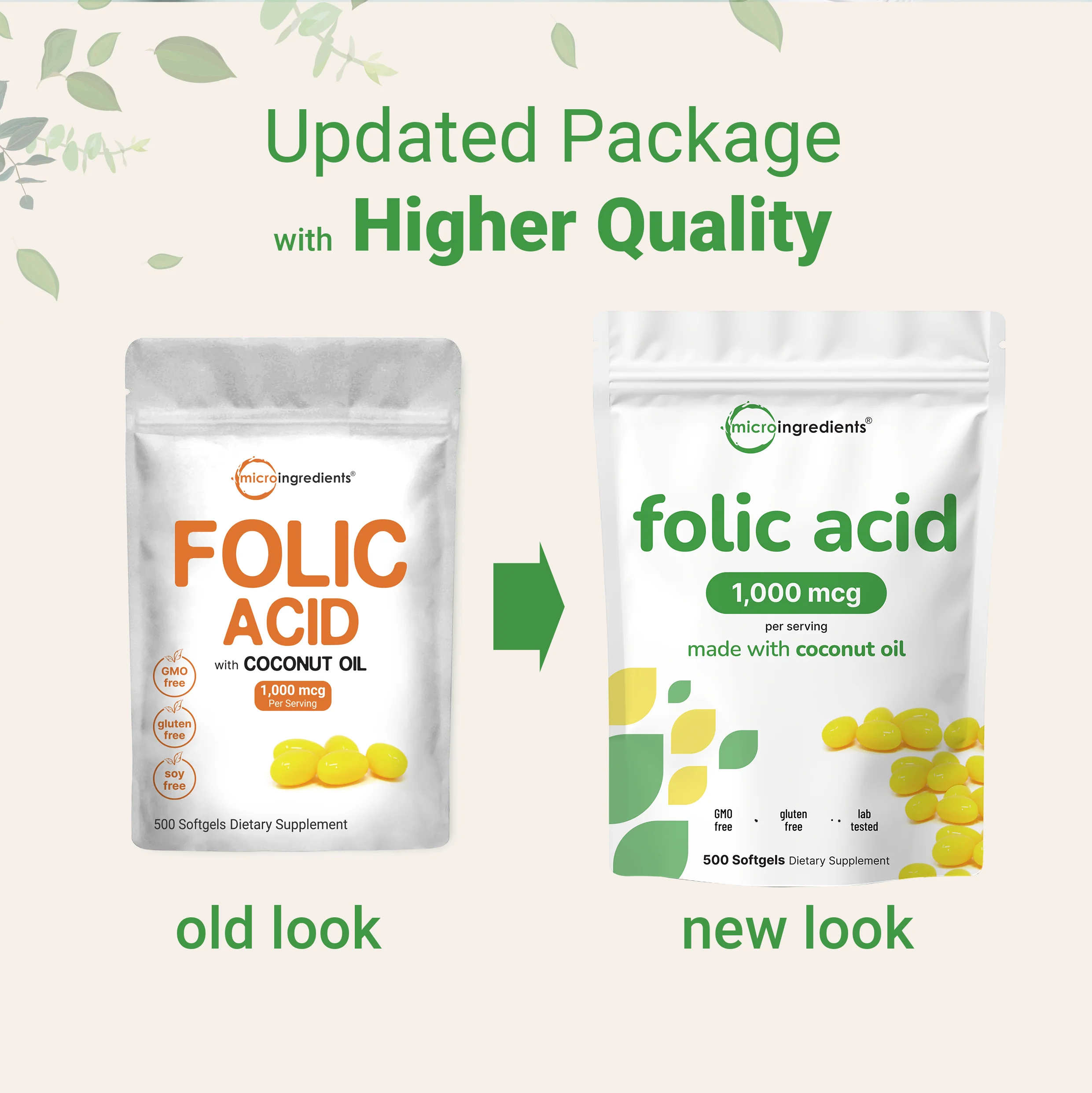 - Micro Ingredients offers high bioavailable easy-to-consume mini folic acid softgels in a convenient one a day formula, infused with a healthy coconut oil carrier that allows for efficient absorption of nutrients.
