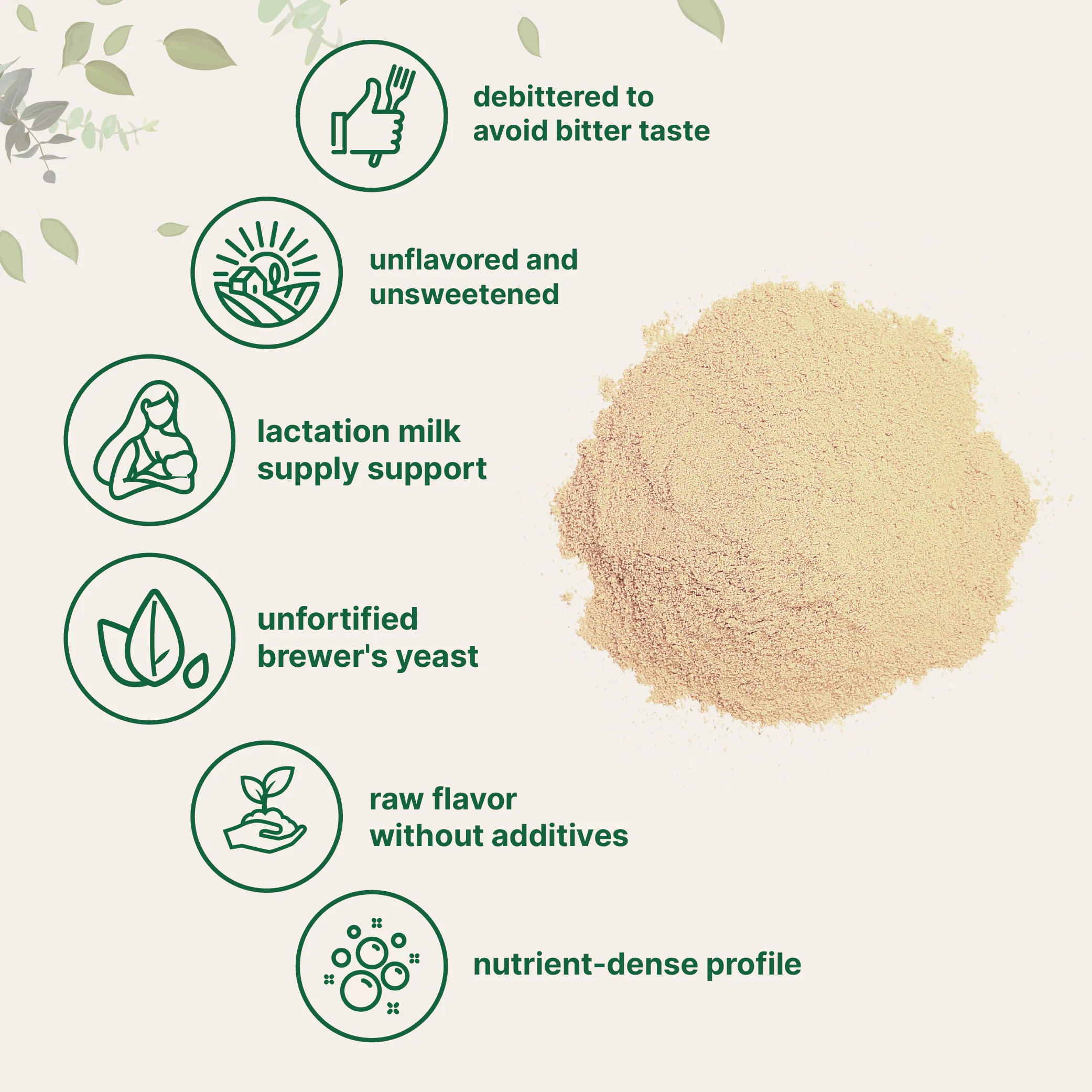 Enjoy Brewers Yeast that is debittered, unfortified, unflavored, and unsweetened, offering a pleasant mild taste without using any additives or fillers.