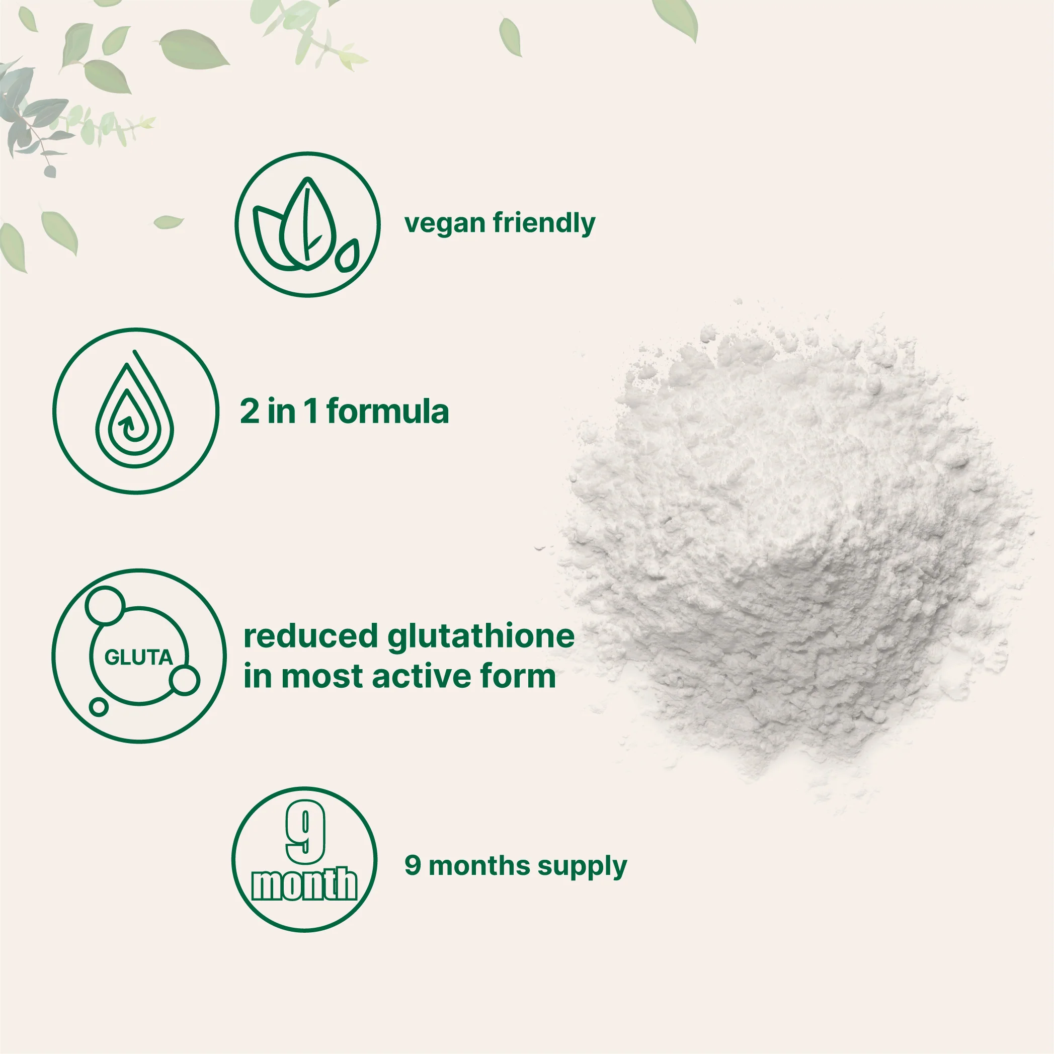 - Glutathione Powder with Inositol, 5 Ounce (Glutathione 500mg Per Scoop), 9 Months Supply, 2 in 1 Formula, Vegan Friendly.