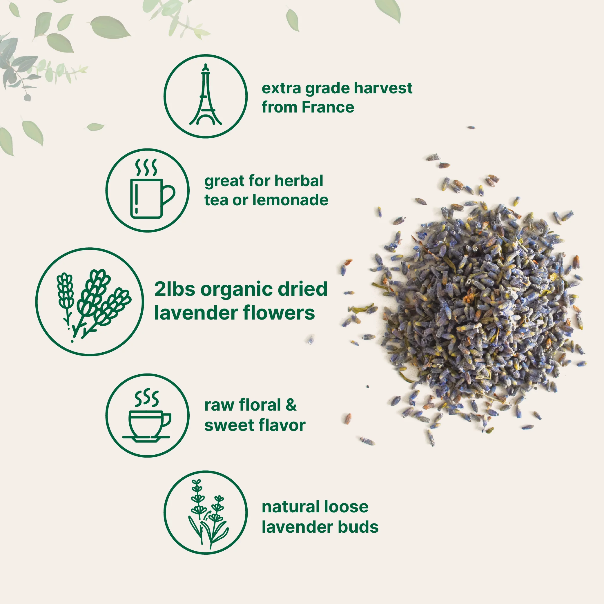 · Premium non-GMO Organic Lavender Flowers. Made without soy, dairy, gluten, fillers, preservatives, artificial flavors, and tree nuts. Ingredients must pass a 3rd party lab test to ensure a product that is safe, pure, and potent.