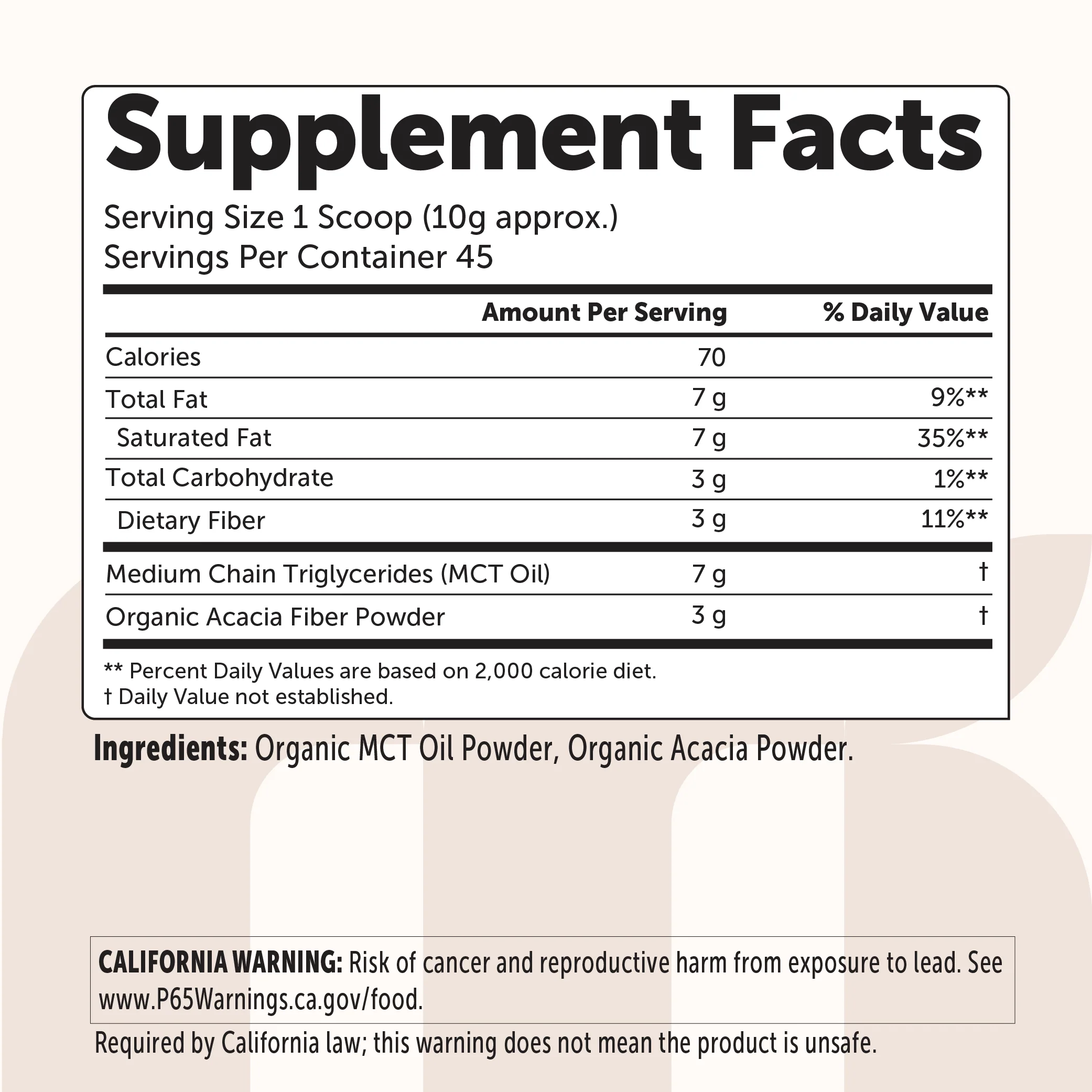 - Powdered Advantage: Higher concentration, quicker absorption, and gentler on the stomach than traditional MCT oil