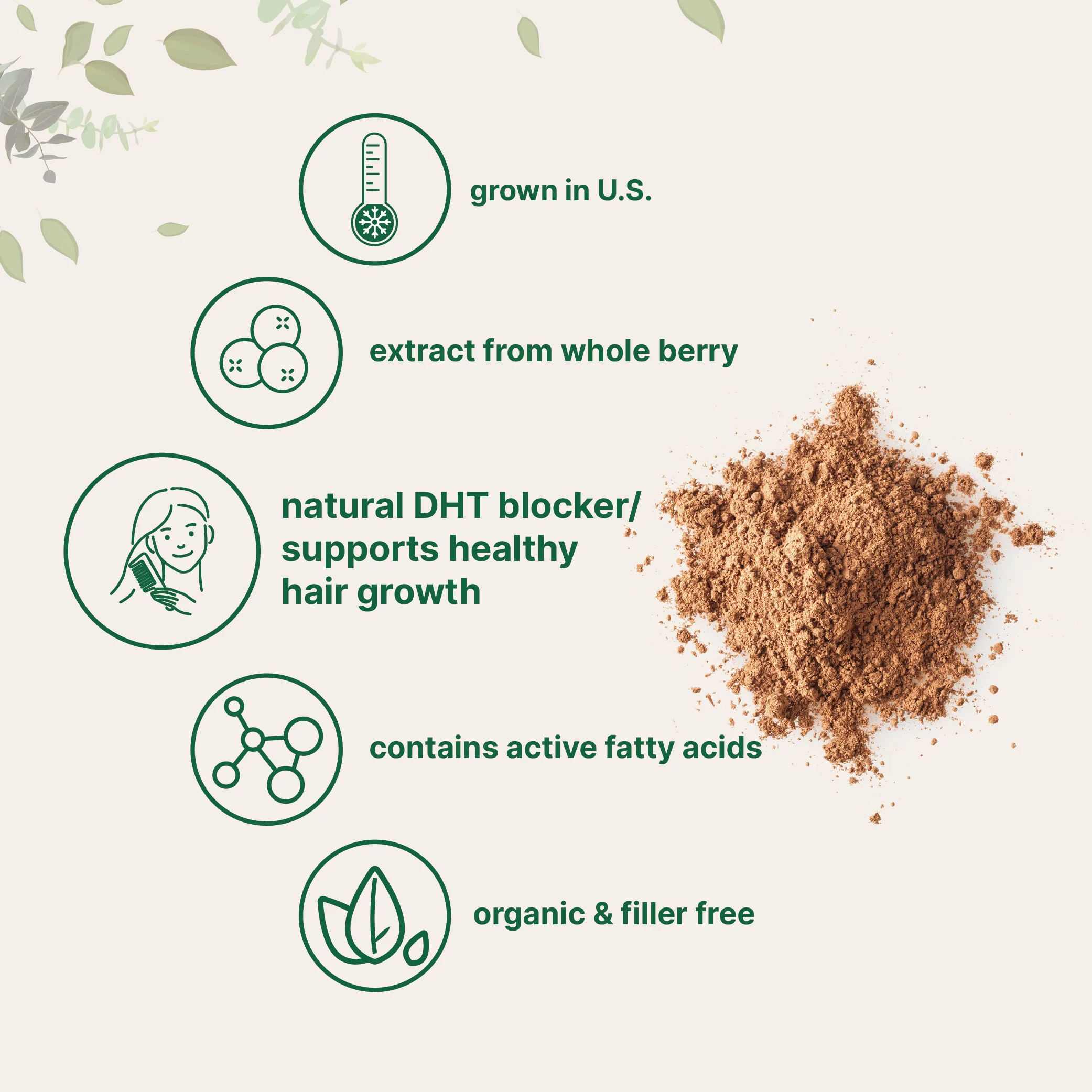 - Sustainably US Grown, Organic Saw Palmetto Berry Extract Powder, with Active Fatty Acids, Pure Saw Palmetto Hair Health Supplement, Healthy Urination Frequency and Flow Supplement, 4 Ounce, Vegan Friendly.Â